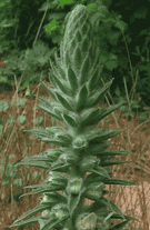 Foxglove species looking good in and out of bloom. The elongated leaves are an even glossy mid-green - a tidy rosette before the spike goes up, and neatly arranged around the purple-tinged stems thereafter. The flowers are creamy-white with purplish-brown netting, with a long broad lip. Stems and flowers are woolly-hairy, as suggested by the species name. Deer-resistant.